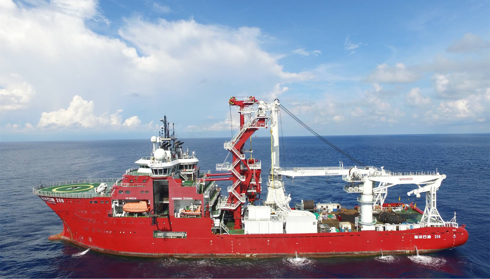 COOEC owns five multi-purpose deepwater vessels: “HYSY 285”, “HYSY 286”, “HYSY 287”, “HYSY 289” and “HYSY 291” with a DP2 or DP3 dynamic positioning system assembled and have the capacity of carrying out deepwater installation, commissioning, maintenance and other operations in 3,000 meters deepwaters. As the flagship for subsea installation, “HYSY 286” is equipped with a DP3 dynamic positioning system, two 3,000 meters work class ROVs, a 400 tons deepwater crane, and a 325 tons vertical pipe laying system. It is capable of installing large subsea structures and laying flexible pipes in 1,500m-deep waters. “HYSY 291” is an offshore vessel for handling mooring systems, which is equipped with a DP2 dynamic positioning system, a 250 tons deepwater crane, two 3,000 meters work class ROVs, and a winch system for handling mooring systems.